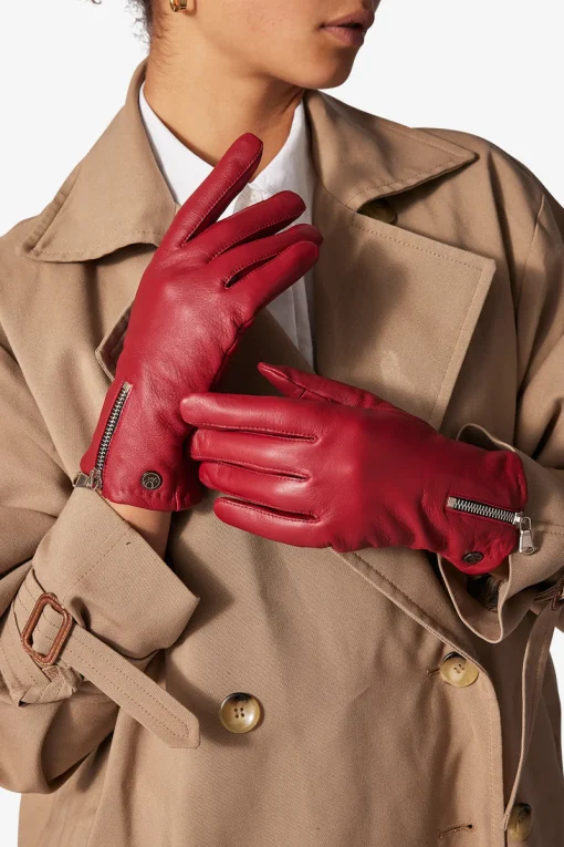 Adax glove Enya. Nice plain glove in smooth leather with zipper detail on the upper side of the glove. Warm lining in 85% wool and 15% cashmere. There is a touch function in the index finger and thumb on both the right and left glove.