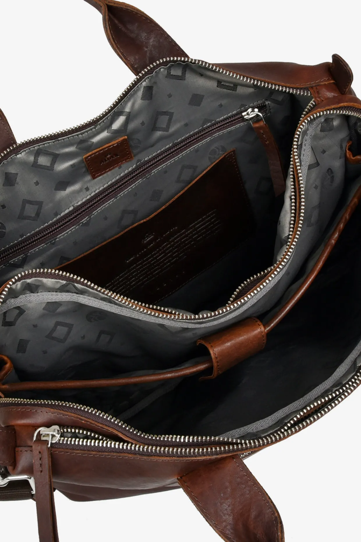 Emil is the perfect work bag for the fashion conscious man, who also appreciate good quality and durability. Emil has a simple and stylish design, therefore the bag fits perfectly for both you who follow the trends of the time, but also you who goes for a timeless design. The briefcase is hand-sewn in fantastically strong buffalo leather. The high quality of buffalo skin strengthens the bag’s durability and ensures that Emil can withstand extra load for several years, while maintaining the beautiful surface.At the front of the work bag is a large zipper pocket, which fits perfectly with the things you want to keep track of throughout the day, such as phone, purse and keys. On the back of Emil is a strap, that fits perfectly to a suitcase. Therefore, Emil is perfect for the man who travels a lot through work. Emil is suited on top of the suitcase, which makes this work bag uncomplicated and smart to take with you on the go.Emil has three compartments, all of which opens with a zipper. Respectively, there is a larger com-partment in the middle and two smaller compartments in each side. In the middle compartment is a pocket with velcro closure, which is made with extra protection for the computer. Inside one of the smaller compartments, there is a large zipper pocket and an open leather pocket, which is well suited for storing small items.The work bag also have an adjustable shoulder strap, and measures from 78-146 cm.It can hold a computer up to 15,6”.