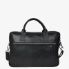 Tobias is a great and simple briefcase in high quality leather, with enough room for what you may need to carry with you in your everyday life.The bag has a top zipper closure and can be carried in the two handles or in the detachable and adjustable shoulder strap. The outside features a zip pocket on the front with room enough for a wallet, keys etc.The inside features one large room and a pocket for a laptop with Velcro closure. Also, there is a small zip pocket, two open pockets and two leather penholders.