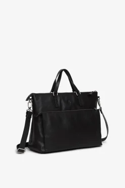 Sasha is a really nice working bag and the little sister to the larger Michelle working bag. It is made of very durable leather and has many great details both inside and out.The bag has a zipper closure and may either be carried in the two handles or in the detachable and adjustable shoulder strap. There is a large zipper pocket with great space, on the front.Inside, there are two great rooms separated with a thin zipper pocket. In one of the rooms, there are two well-protected pockets with Velcro closure for a laptop or tablet. In the other room, there is a large zipper pocket with two small pockets and two holders for pens.Further is a leather keychain, which can be clicked on and off as needed.The bag can hold a computer up to 17 inches.