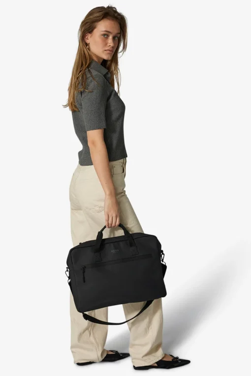 Niki is a cool and timeless computer bag in a minimalistic design, which is perfect for everyday life! The bag is made with a rubberized surface, which makes the bag and the zipper construction water-resistant, which is why it fits any outfit and purpose. No worry, you can easily bring your Niki bag on the bike, in all kinds of weather. Niki is a work bag which is divided into two compartments, both of which are opened with a zipper. In the back partition you will find a computer pocket, and in the front, you will find a zipper pocket and space for your pens. The folder has 2 carrying handles and an adjustable shoulder strap. The bag can hold a computer up to 15,6”.