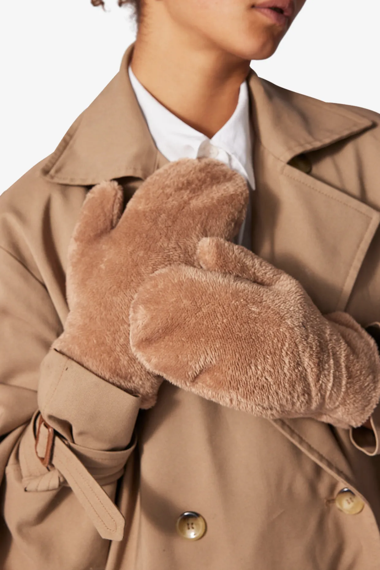 The Adax mitten Paige is made of 100% polyester, the mitten is reversible, and in the softest “teddy fur”