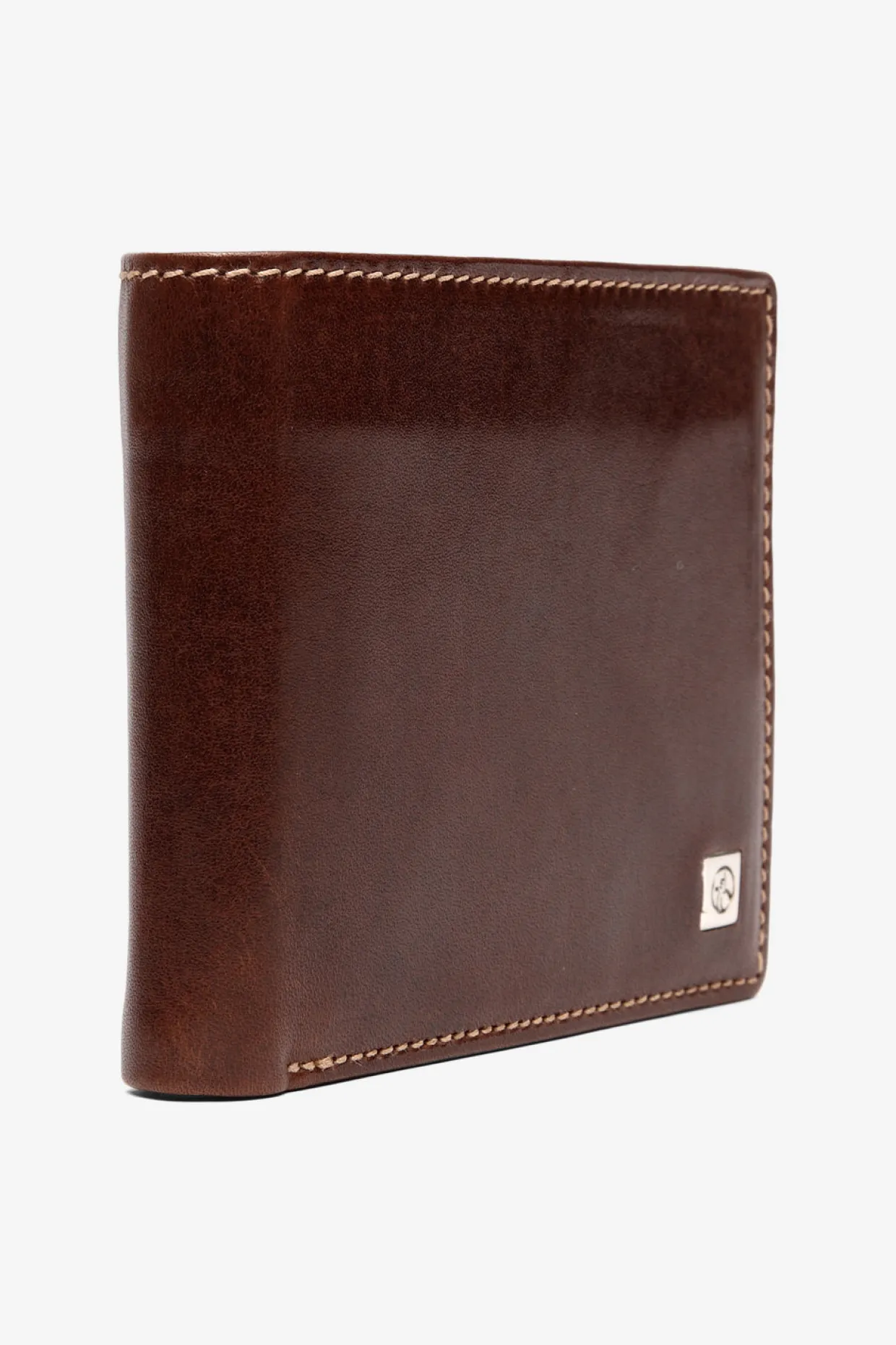 This classic and stylish wallet is one of our most popular items for men. The leather is smooth with a bit of shine to it.It has three interior compartments for banknotes, a small coin pocket, and 10 card slots.This wallet has RFID protection