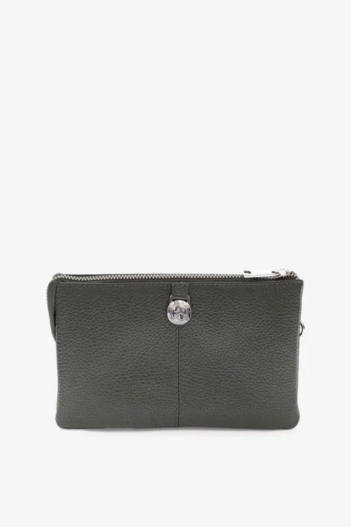 It has the same size as a clutch, but included is a slim adjustable shoulder strap which can be removed. There is a small braided wrist strap which can also be removed. Zip pocket on the front of the bag and zip closure at the top. All zippers and fittings are silver-plated.This clutch can contain six cards, and there are two slim zip pockets and an open leather pocket.Nellie – The perfect clutch for everyday use and for party wear with room for the most necessary