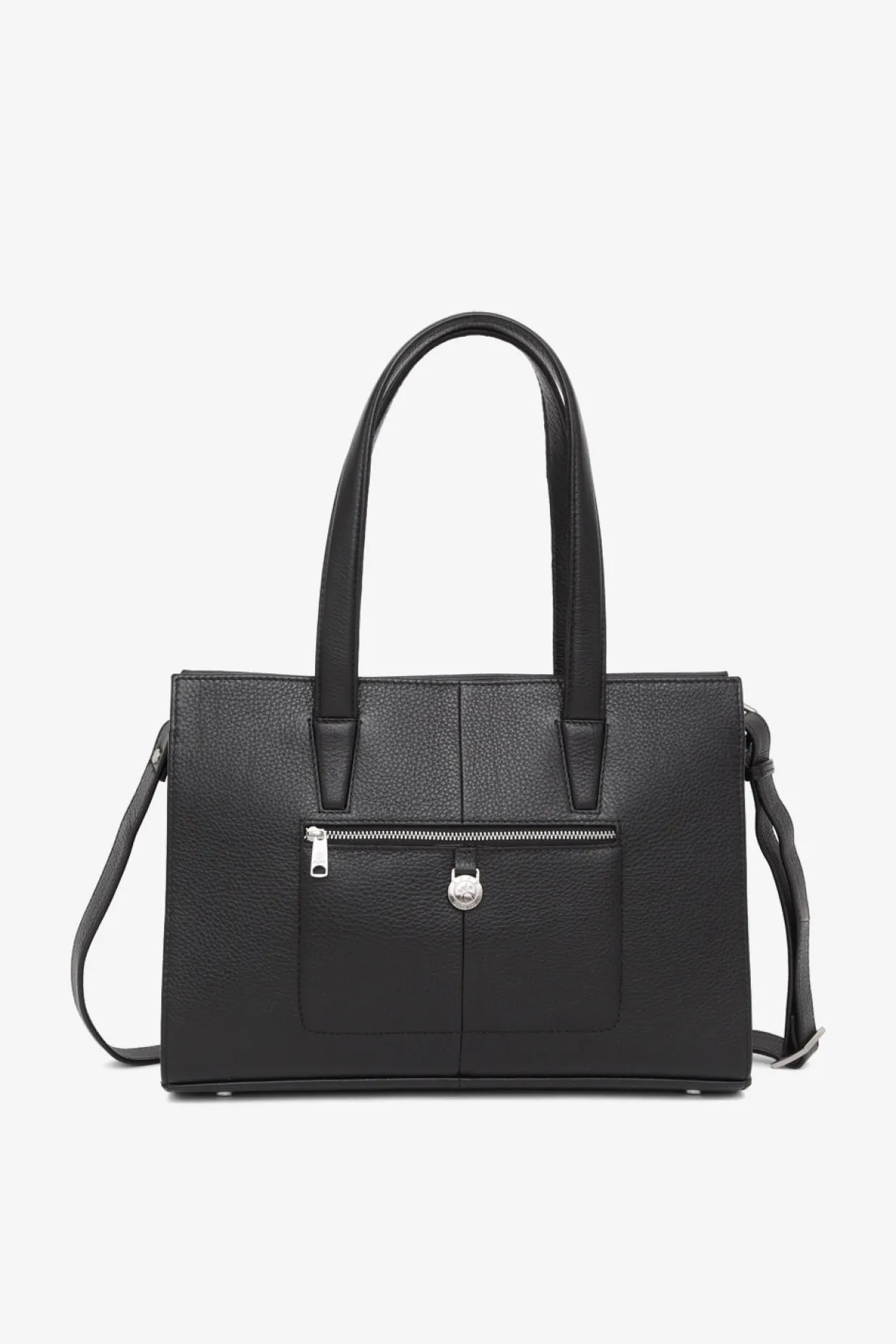 Aline is a gorgeous bag in a classic design, with small fine details. It will be perfect for everyday life and may either be carried in the two handles or in the detachable shoulder strap.The bag has a zipper closure and consists of three great rooms separated with two thin zipper pockets. In the back room, there is another small zipper pocket with an open leather pocket, for a smartphone. On the back of the bag, is a small zipper pocket.With this Adax handbag you will have great space for all the things you need in your daily life.