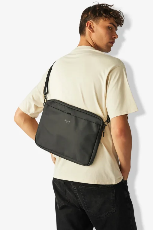 Juno is the perfect light work bag with a rubberized surface, which makes the bag and the zipper construction water resistant. Juno has a simple, stylish and timeless design, so you can safely use Juno season after season, and still fit into fashion.At the front of the bag is a large pocket with velcro closure. On the back of Juno is a visible vertical zipper pocket, which gives the bag a cool look. Juno is opened at the top with a zipper, in which there is a large compartment and a large pocket on the side, which is made with extra protection for your computer.The bag has a detachable and adjustable shoulder strap. The shoulder strap is made of thick nylon, and therefore fits really well on the shoulder without falling down.The bag can hold a computer up to 13”.